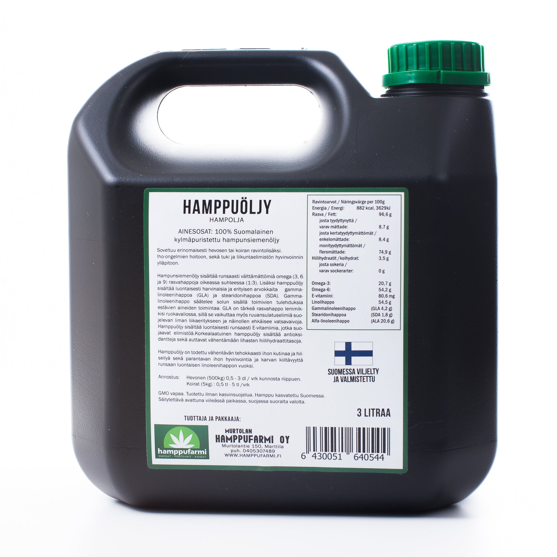 Contents: 100% Finnish cold-pressed hemp seed oil.